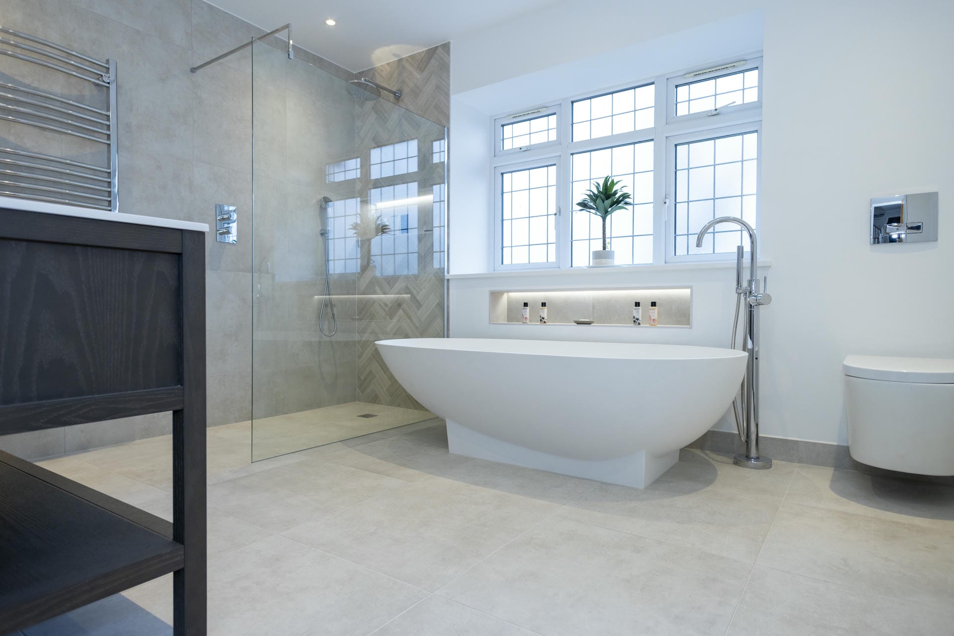 This project focused on transforming an outdated and dark kitchen into a bright, modern and functional space that would complement the overall grandeur of the house. The primary goal was to create a kitchen that felt open and inviting while seamlessly integrating with the home’s existing architectural style. This was achieved by extending the kitchen area and incorporating expansive roof windows that dramatically increased the amount of natural light in the space, giving it an airy, open feel. A garden-facing window seat was added to enhance the connection between the interior and exterior spaces. Despite budget constraints, high-quality materials were used to maintain a luxurious feel, such as cladding the PVC-framed glass roof with oak. Additionally, the project included upgrading the family and guest bathrooms to a sleek, contemporary standard, further elevating the home’s aesthetic.